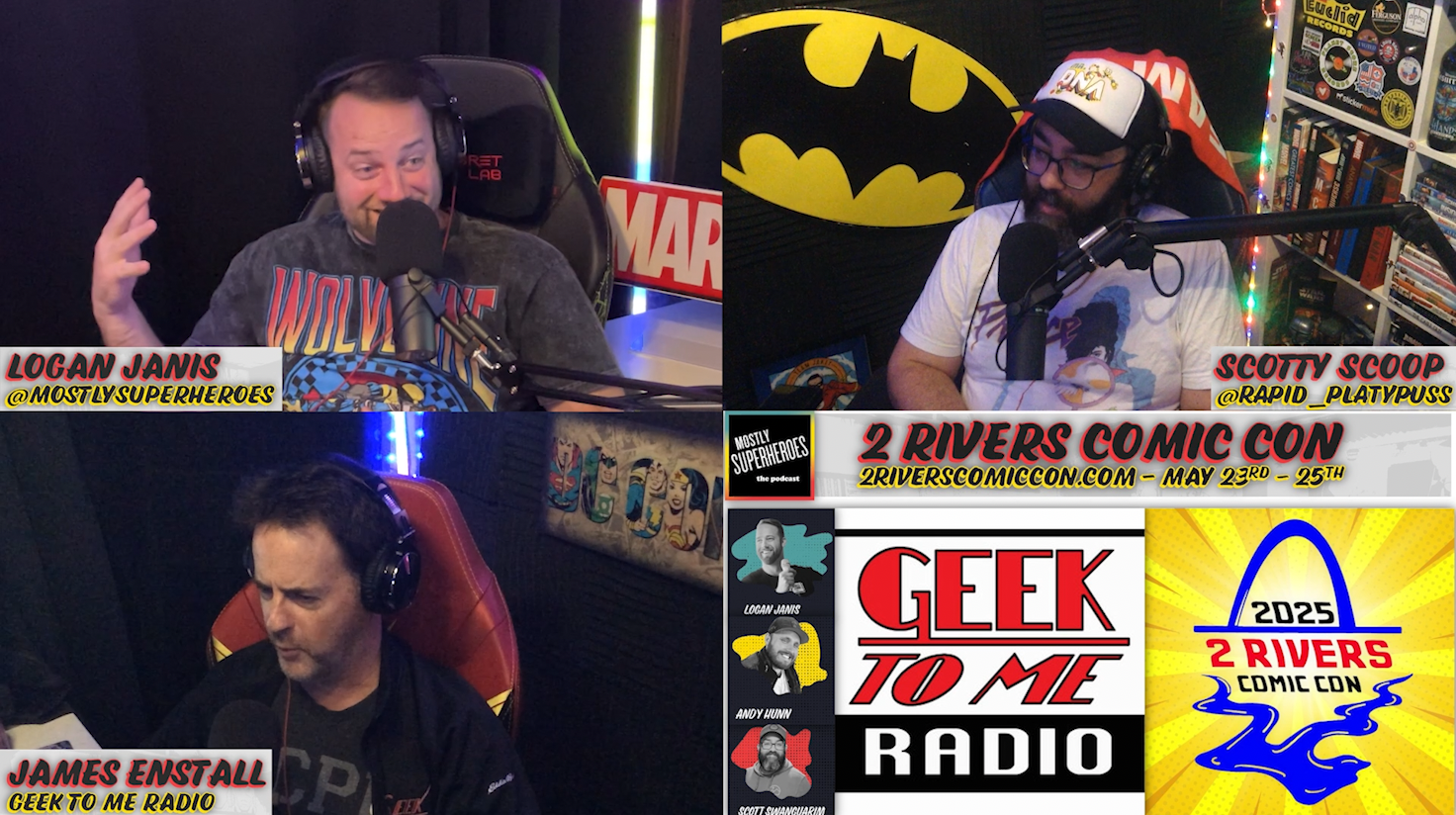 Get ready for an all-out nerd sesh with Logan Janis and Scotty Scoop from Mostly Superheroes, joined by the one and only James Enstall from Geek to Me Radio! We’re diving deep into the worlds of DC, MCU, Star Wars, toys, comics, and all things geek culture—just in time for 2 Rivers Comic Con, happening May 23rd-25th!