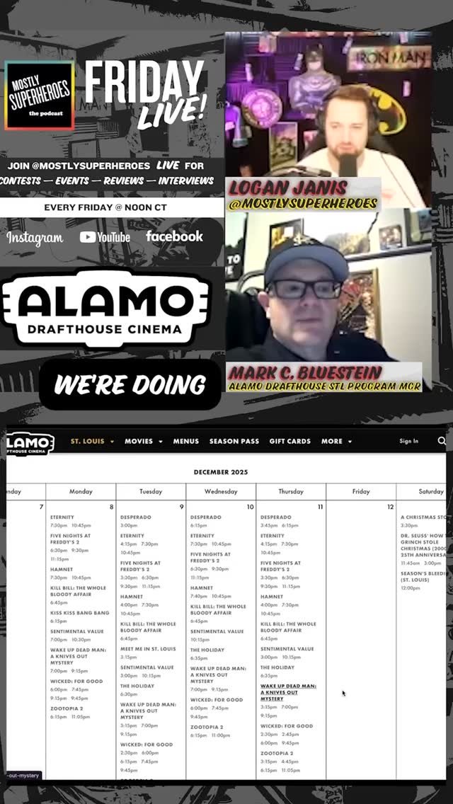Join Mostly Superheroes Live every Friday on YouTube, Facebook, and Instagram for contests, Events, TV & FIlm Reviews, and Surprise interviews. Bookmark this page to check out preview Friday Live sessions.